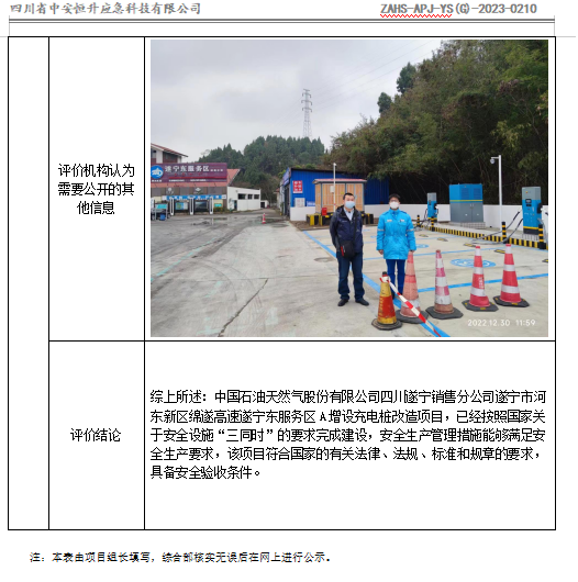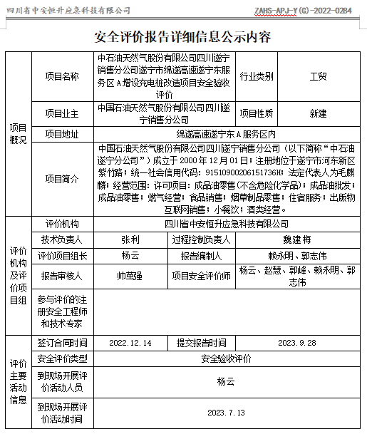 中石油天然气股份有限公司四川遂宁销售分公司遂宁市绵遂高速遂宁东服务区A增设充电桩改造项目安全验收评价
