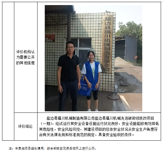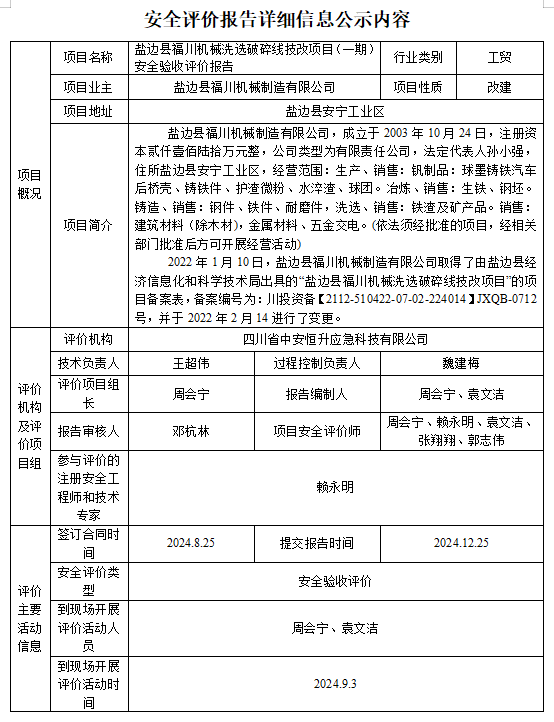 盐边县福川机械制造有限公司盐边县福川机械洗选破碎线技改项目(一期)安全验收评价