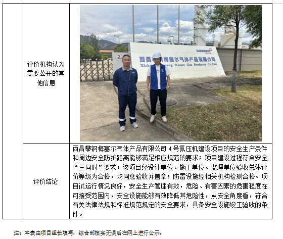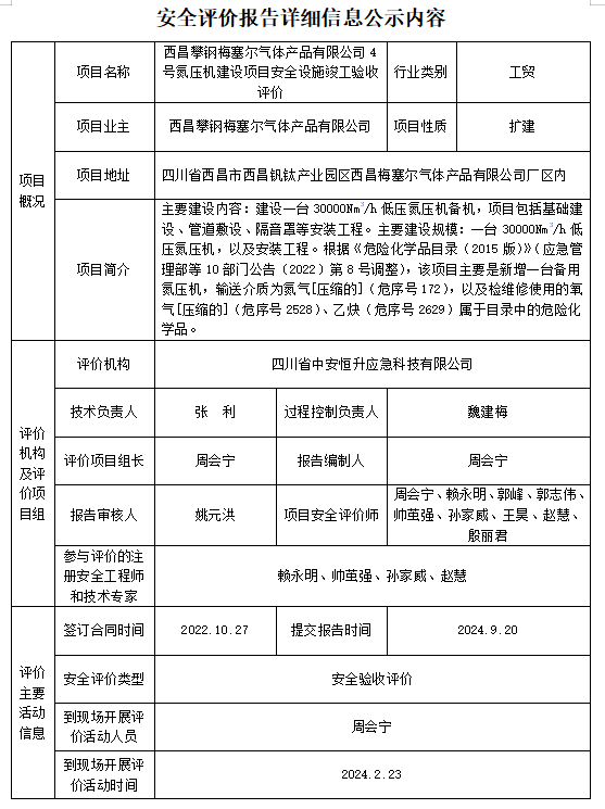 西昌攀钢梅塞尔气体产品有限公司4号氮压机建设项目安全设施竣工验收评价