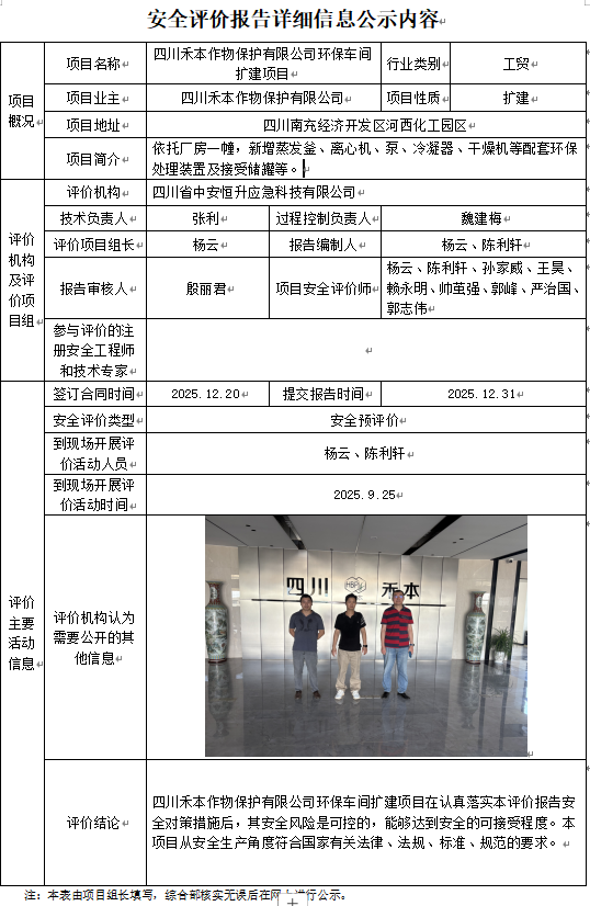 四川禾本作物保护有限公司环保车间扩建项目安全预评价
