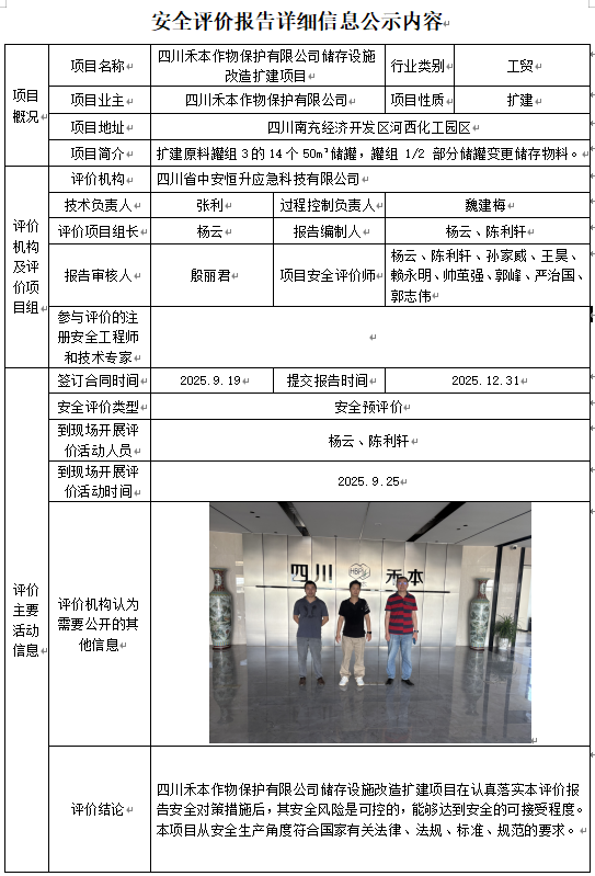 四川禾本作物保护有限公司储存设施改造扩建项目安全评价